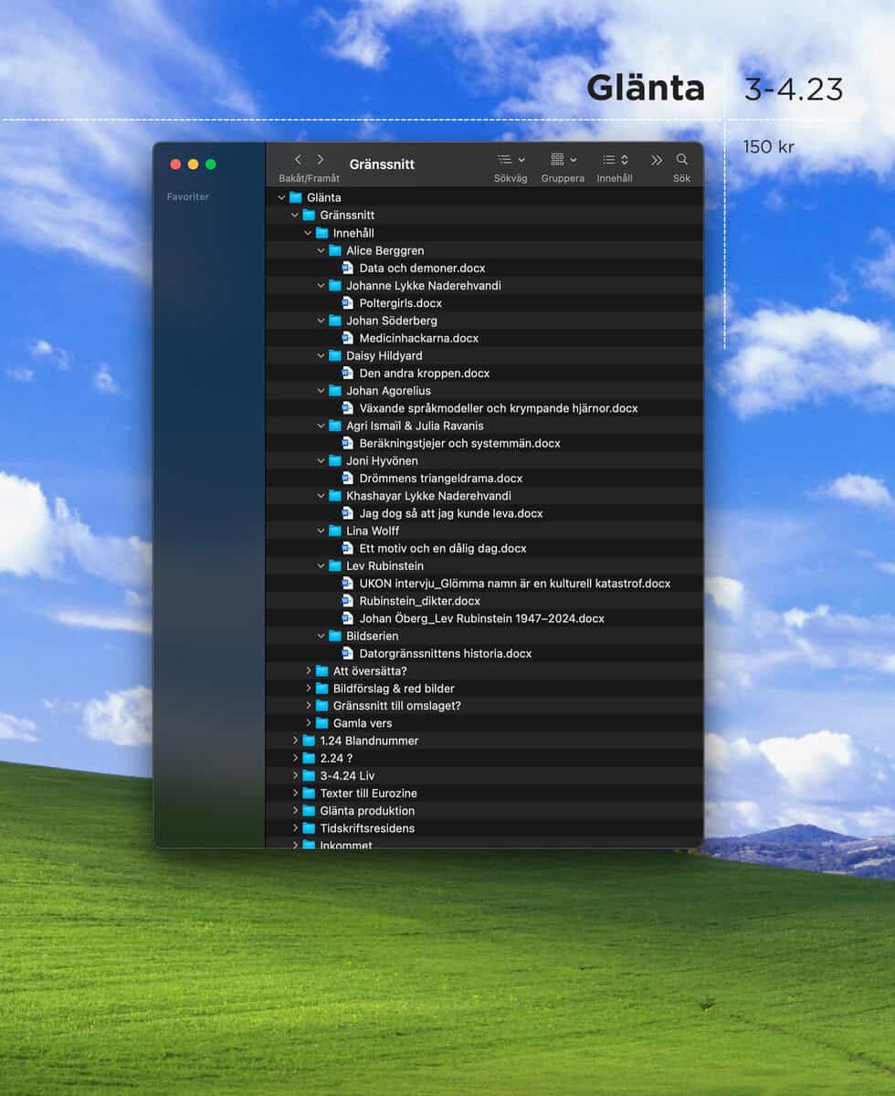 Den nya tidskriften Glänta 3-4 (2023): Gränssnitt bjuder på en mångfacetterad utforskning av begreppet gränssnitt, som sträcker sig bortom de traditionella tekniska aspekterna. Författarna, däribland Agri Ismaïl och Julia Ravanis, diskuterar hur gränssnitt formar vår interaktion med världen, inte bara genom skärmar och tangentbord, utan även genom litteratur och sociala praktiker.