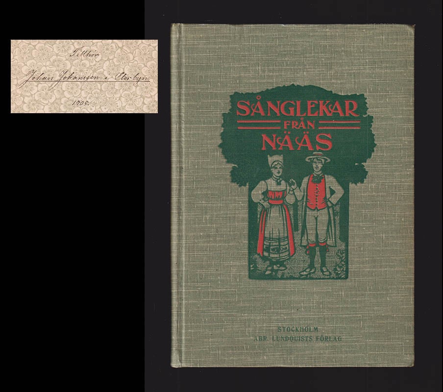 I Sånglekar från Nääs presenteras ett urval av 100 danslekar med melodistämma och text. Bland de inkluderade lekarna återfinns titlar som Abborren leker, Bina, Julbocken och Kråkan sitter på taket. Varje lek är noggrant ordnad och utgiven för att bevara och sprida den folkliga kulturen. Boken är tryckt hos P. Palmquists Aktiebolag och har en prydlig, samtida ägarnotering på insidan av den främre pärmen.