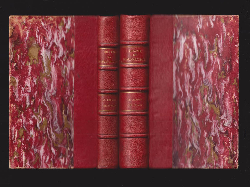 Denna utgåva av Théâtre de Beaumarchais innehåller de berömda pjäserna Le barbier de Séville och Le mariage de Figaro. Pierre Augustin Caron de Beaumarchais, en framstående fransk dramatiker, utmanade sin tids samhällsnormer genom sina skarpa och humoristiska skildringar av adeln. Hans verk har haft en betydande påverkan på senare kompositörer som Mozart och Rossini.