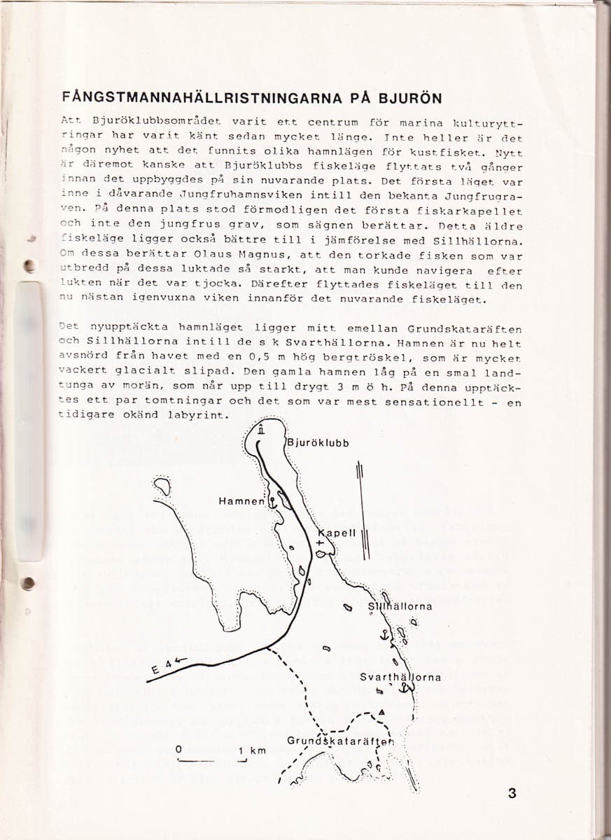 Information om Fångstmannahällristningarna på Bjurön. Ristningarna vid Svarthällviken Bjurön, Lövångers socken (manuskript) av Rabbe Sjöberg