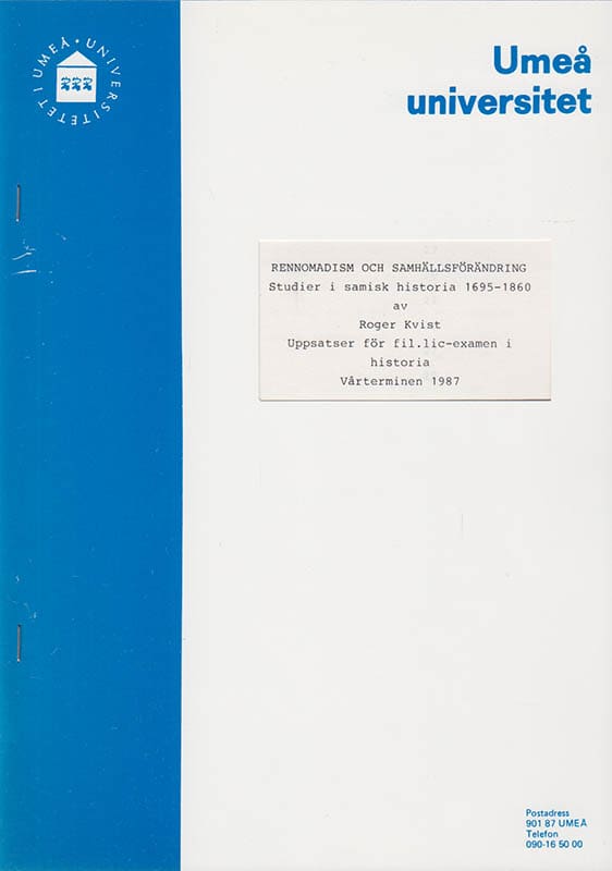 Information om Rennomadism och samhällsförändring. Studier i samisk historia 1695-1860 av Roger Kvist