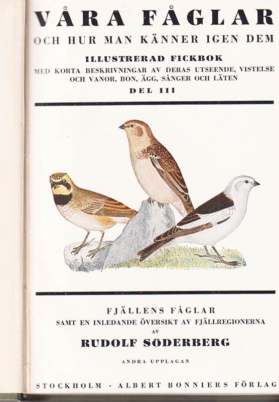 Våra fåglar och hur man känner igen dem. Illustrerad fickbok. I-IV av Rudolf Söderberg är en omfattande och informativ samling som erbjuder en djupgående insikt i den svenska fågelfaunan. Utgiven mellan 1936 och 1938 av Albert Bonniers Förlag, utgör denna verk en ovärderlig källa för både amatörornitologer och fågelentusiaster.