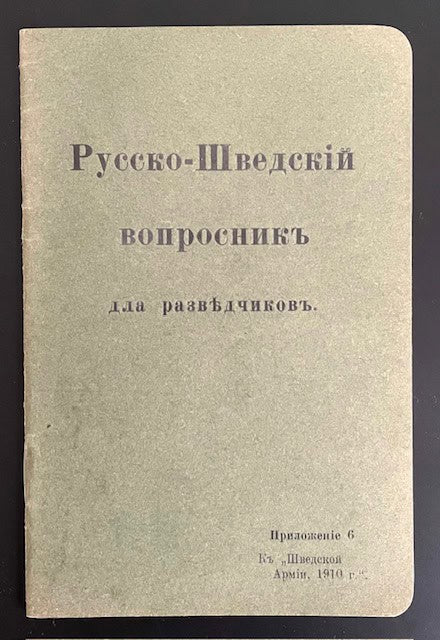 Information om Rysk-svensk parlör för spanare 1910. [Russko-švedskij voprosnik dla razvědčikov] Русско-Шведскій вопросникъ для разсѣдчиковъ. av