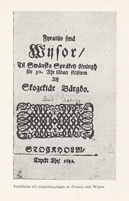Denna historiska studie, Fyratijo små wijsor, ger en fascinerande inblick i litteraturens värld under 1600-talet. Utgiven av Sällskapet Bokvännerna 1955, innehåller den 202 sidor med illustrationer, inklusive titelsidan från originalupplagan från 1682. Boken är tryckt i 750 exemplar, varav 300 är bibliofilupplagor. Förord och kommentar av Bertil Sundborg fördjupar förståelsen av verket och dess kontext.