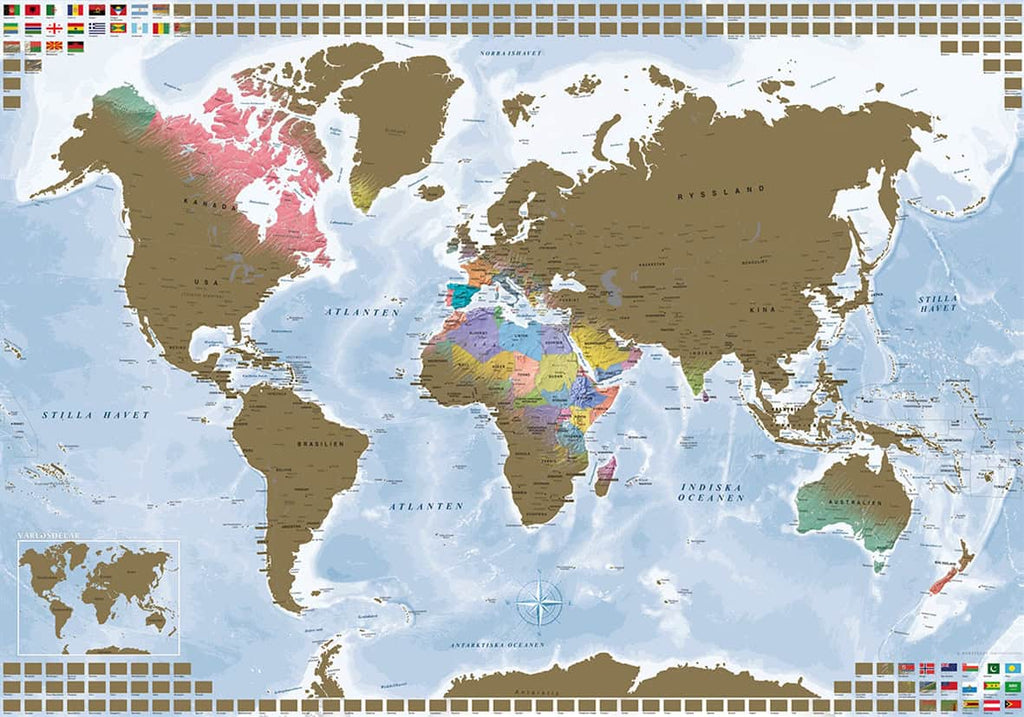Upptäck världen med Skrapkarta världen guld väggkarta i tub: Storlek 100x70cm. Denna karta erbjuder en unik och interaktiv metod för att utforska geografi och lokalhistoria. Med varje skrapning av guldytan avslöjas färgglada detaljer om olika länder och regioner, vilket gör den till en utmärkt vägledning för både nyfikna resenärer och geografiintresserade.