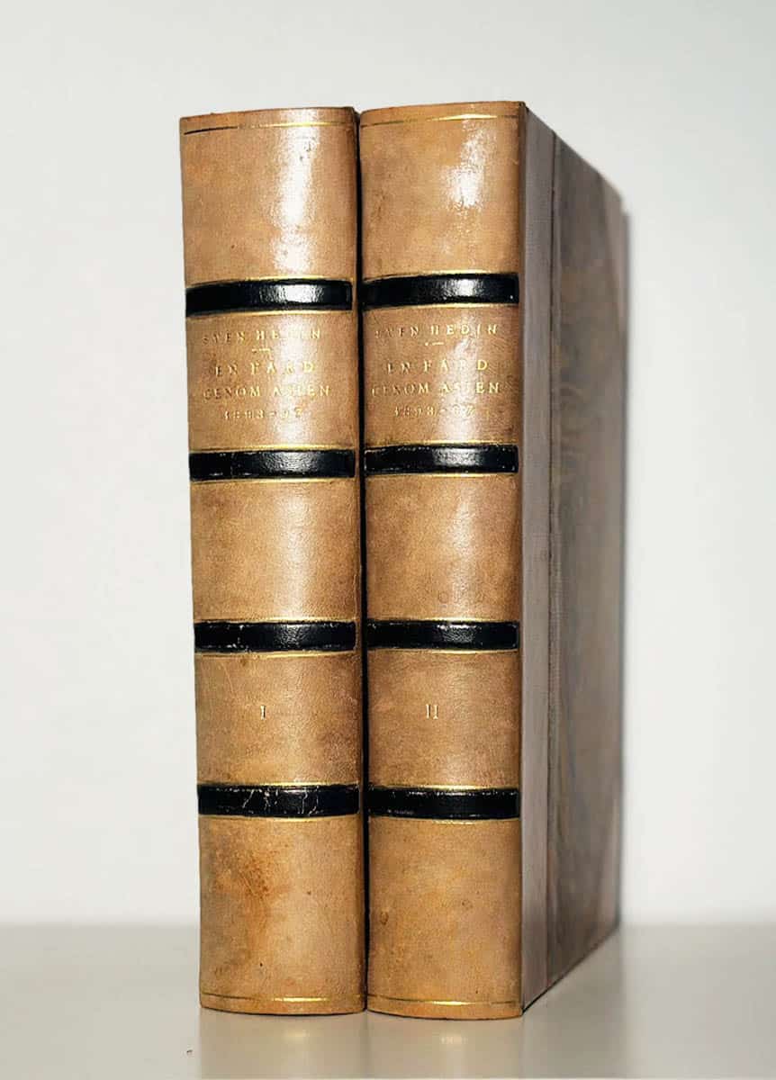 Hedin, som var en framstående svensk upptäcktsresande och geograf, kartlade tidigare okända områden och bidrog starkt till vår förståelse av Asien. Denna första upplaga av hans tredje expedition är en viktig del av hans arbete och dokumenterar de utmaningar och insikter han stötte på under sina resor. Med en noggrant utformad layout, inklusive marmorering och förgylld ryggdekor, är verket inte bara en litterär prestation utan även en visuell upplevelse.