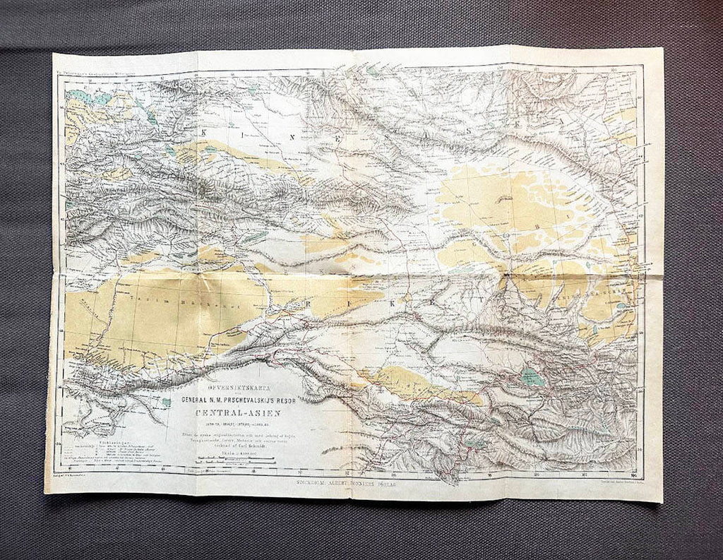 Publicerad av Albert Bonniers Förlag 1891, består verket av en titelplansch med ett porträtt av Przjevalskij, följt av 90 sidor text och 455 sidor som omfattar detaljerade beskrivningar av hans resor. Boken inkluderar även 23 planscher, 56 illustrationer i texten och två färgkartor över Centralasien, varav en är utvecklingsbar. Denna första och enda upplaga är ett värdefullt biblioteksexemplar, med stämpel från Helsingborgs Fackföreningars Bibliotek, vilket ger den en historisk kontext.