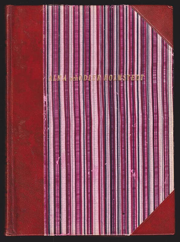 Det bruna halvfranska bandet med förgylld ryggdekor och marmorerat pärmpapper, tillsammans med det röda övre snittet, ger boken en gedigen och stilren framtoning. Den första och enda upplagan, med förgyllt tryckt ägarnamn 'Alma och Odler Holmstedt' på framsidan, är en samling av värdefull information och kulturell historia som inte bör missas av den som har intresse för Västerbotten och dess gårdar.