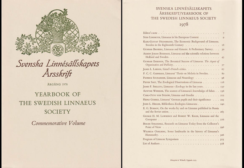 Information om Svenska Linnésällskapets Årsskrift. Yearbook of The Swedish Linnaeus Society. Årg. XXVIII 1978. Commemorative Volume (Jubileumsvolym) av