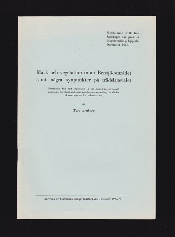 I Mark och vegetation inom Bensjö-området samt några synpunkter på trädslagsvalet av Tore Arnborg, utforskas den lokala floran och vegetationen i Bensjö, en småort i Bräcke kommun i Jämtlands län. Boken, publicerad 1957, är ett särtryck från Norrlands skogsvårdsförbundets tidskrift och innehåller en detaljerad analys av områdets botanik.
