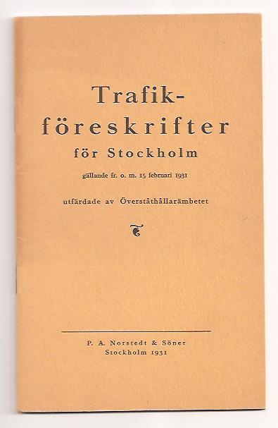 Trafikföreskrifter för Stockholm gällande fr.o.m. 15 februari 1931 erbjuder en intressant inblick i stadens trafikregler under tidigt 1900-tal. Denna publikation, som är klammerhäftad och består av 42 sidor, ger en detaljerad översikt över de föreskrifter som var aktuella i Stockholm vid denna tidpunkt.