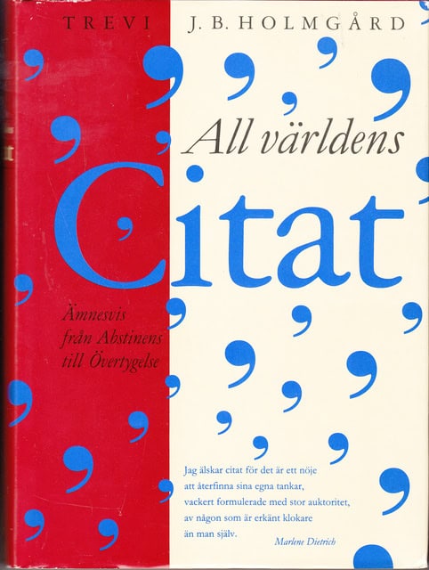Publicerad av Trevi 1995, erbjuder denna volym 398 sidor av välvalda citat. Formatet, 18 x 24,2 cm, gör den lätt att hantera. Boken har ett förlagsband med skyddsomslag och är i mycket gott skick, med endast lättare slitage på omslaget. ISBN-nummer 9789171611390 säkerställer att du enkelt kan hitta denna värdefulla samling.