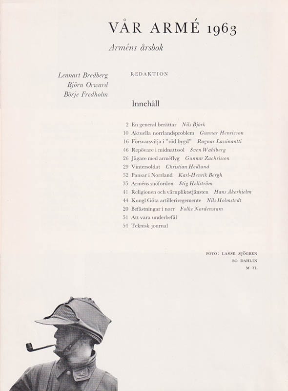 Vår armé 1963. Arméns årsbok är en illustrerad publikation utgiven av Rabén & Sjögren. Den innehåller 64 sidor med en riklig mängd bilder, kartor, sprängskisser och teckningar som ger en visuell inblick i arméns verksamhet under året. Boken är tryckt i klotryggband och har en färgglad omslagsbild, vilket gör den till en intressant samlarobjekt för den som är intresserad av militaria.