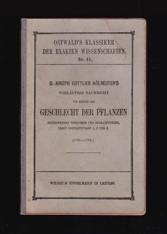 Denna historiska studie, D. Joseph Gottlieb Kölreuter's Vorläufige Nachricht von einigen das Geschlecht der Pflanzen betreffenden Versuchen und Beobachtungen, nebst Fortsetzungen 1, 2 und 3, publicerades mellan 1761 och 1766 och är en viktig del av den botaniska litteraturen. Utgiven av W. Pfeffer, ger verket en inblick i Kölreuters tidiga experiment och observationer av växters fortplantning och variation. Kölreuter, som föddes den 27 april 1733 i Sulz am Neckar och avled den 11 november 1806 i Karlsruhe, anses vara en pionjär inom genetik och botanik.
