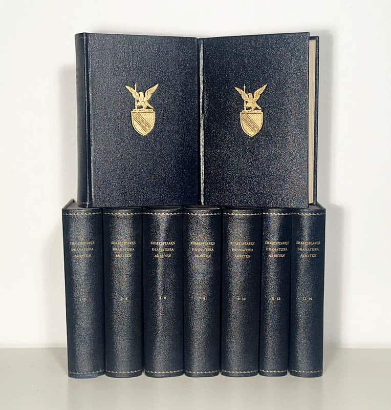 Översatt av Karl August Hagberg, som var en framstående professor i estetik och moderna språk, ger denna utgåva en trogen återgivning av Shakespeares pjäser. Samlingen inkluderar kända verk som Romeo och Julia, Hamlet, Macbeth och En midsommarnattsdröm, samt mindre kända men lika viktiga pjäser. Varje del är noggrant reviderad av Nils Molin, vilket säkerställer en hög standard genom hela verket.